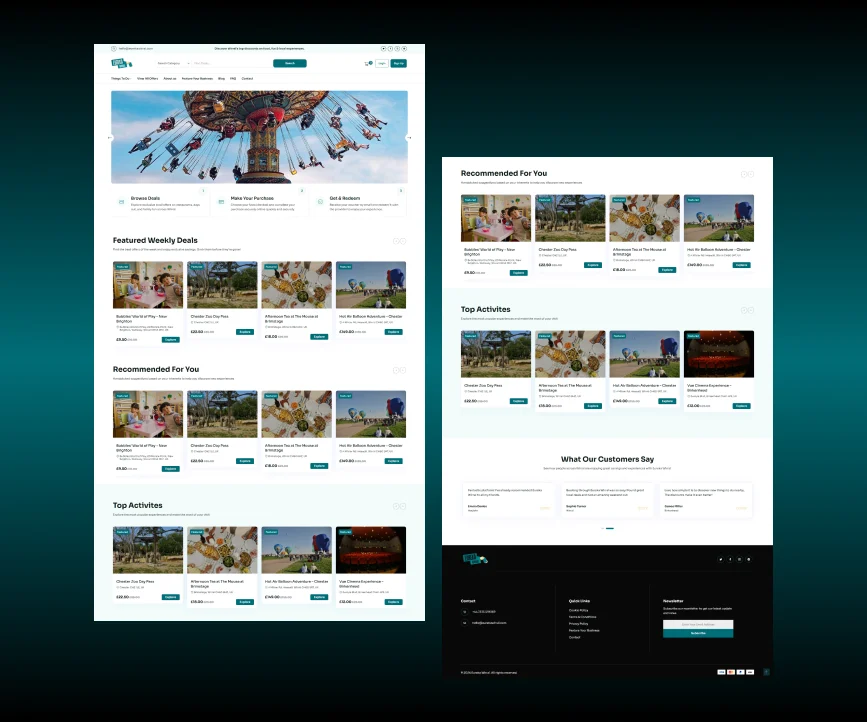 I designed the website for Eureka Wirral, a local deals platform that helps users discover exclusive offers on restaurants, family activities, and days out across Wirral. The goal was to create a simple and intuitive experience that allows visitors to easily browse available deals and find activities that suit their interests.